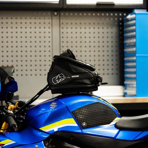 La borsa da serbatoio Oxford Q4R è una borsa compatta a sgancio rapido, adatta a qualsiasi moto ma sufficientemente capiente per gli oggetti essenziali di una gita giornaliera, inclusa una visiera di ricambio. Realizzata in resistente nylon ripstop 420D con zip resistenti all’acqua e capacità espandibile fino a 4 litri. Include portamappa, tasca per telefono/GPS con schermo antiriflesso, tasca per le chiavi, uscita per cavi con tasca interna per dispositivi e maniglia per il trasporto.